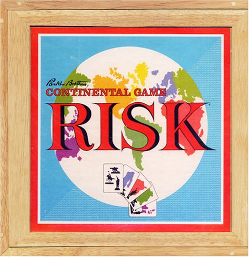 Conquer opponents' armies and dominate the world with Nostalgia Risk. This special edition of Risk celebrates 40 years of the most popular military strategy game. Includes collectible wooden game box, classic wood armies in 6 colors, a full-size foldout game board and card deck with vintage graphics, the classic map from the 1959 version, 3 red and 3 ivory-colored dice, army storage containers, a game history, and rules. Part of the Parker Brothers Nostalgic Games series. Imported.